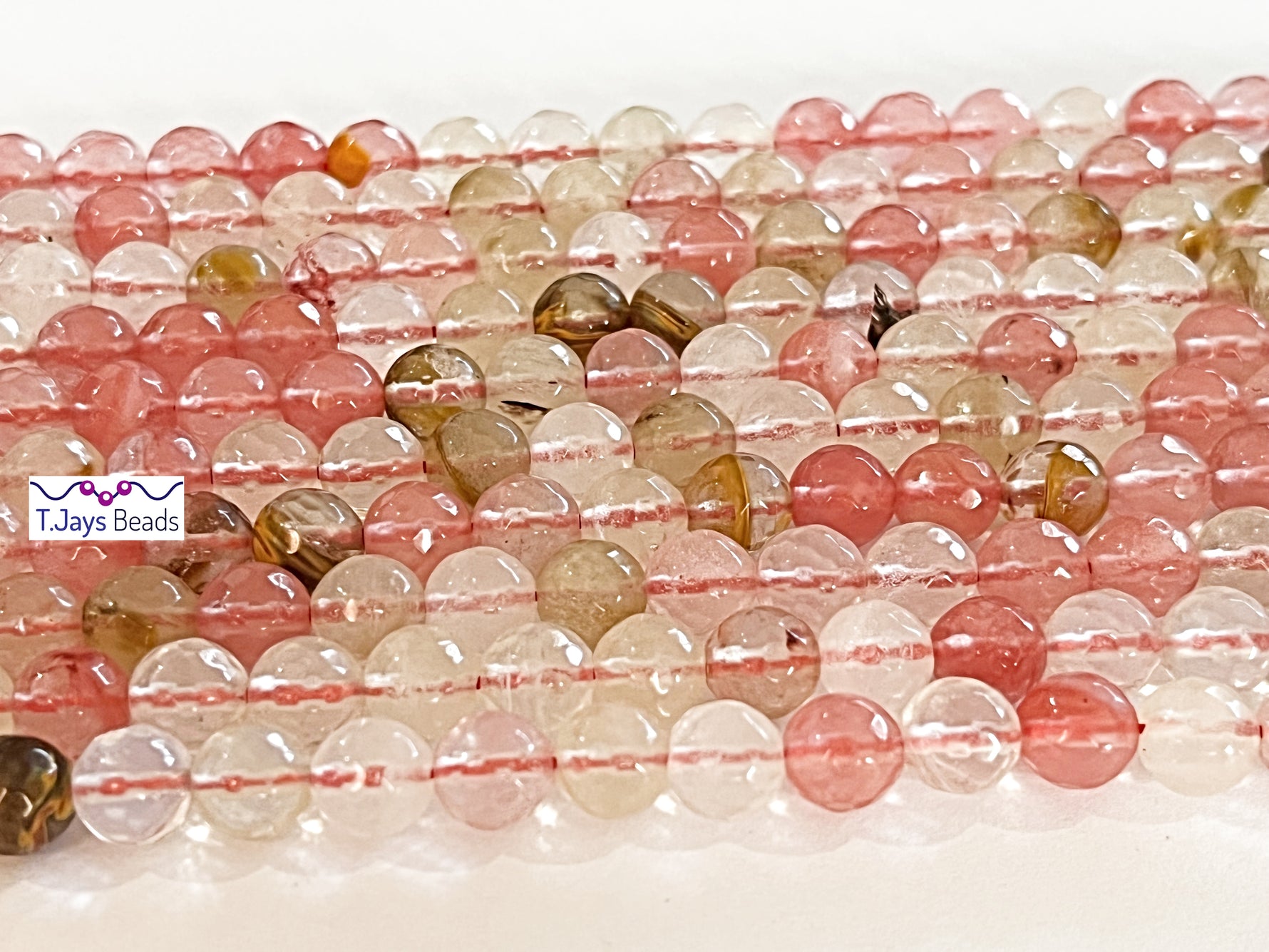 Cherry Quartz (Mixed Colour) | Faceted Round Beads | 8mm