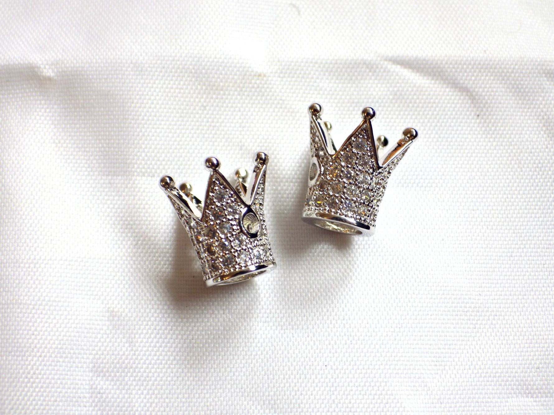 - 2 x brass micro pave cubic zirconia crown beads