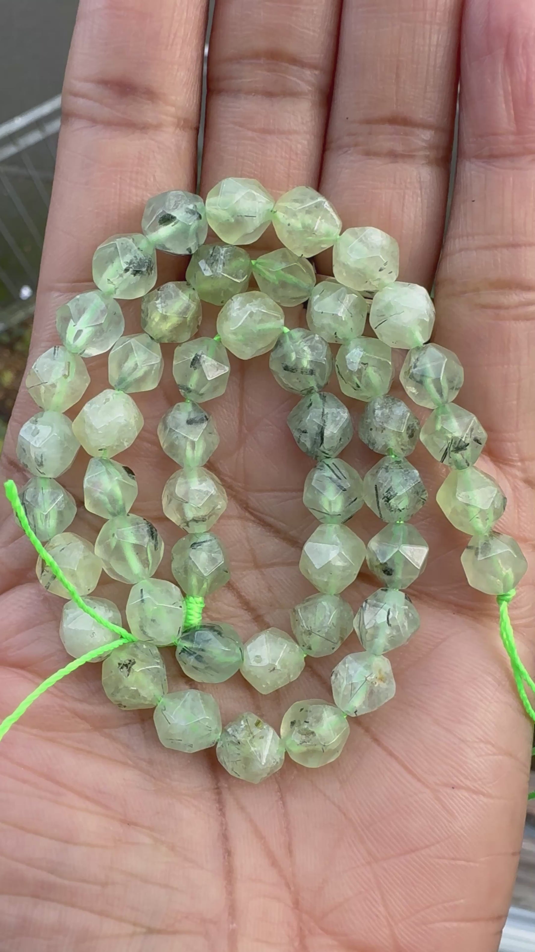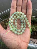 - 8mm prehnite round diamond cut beads