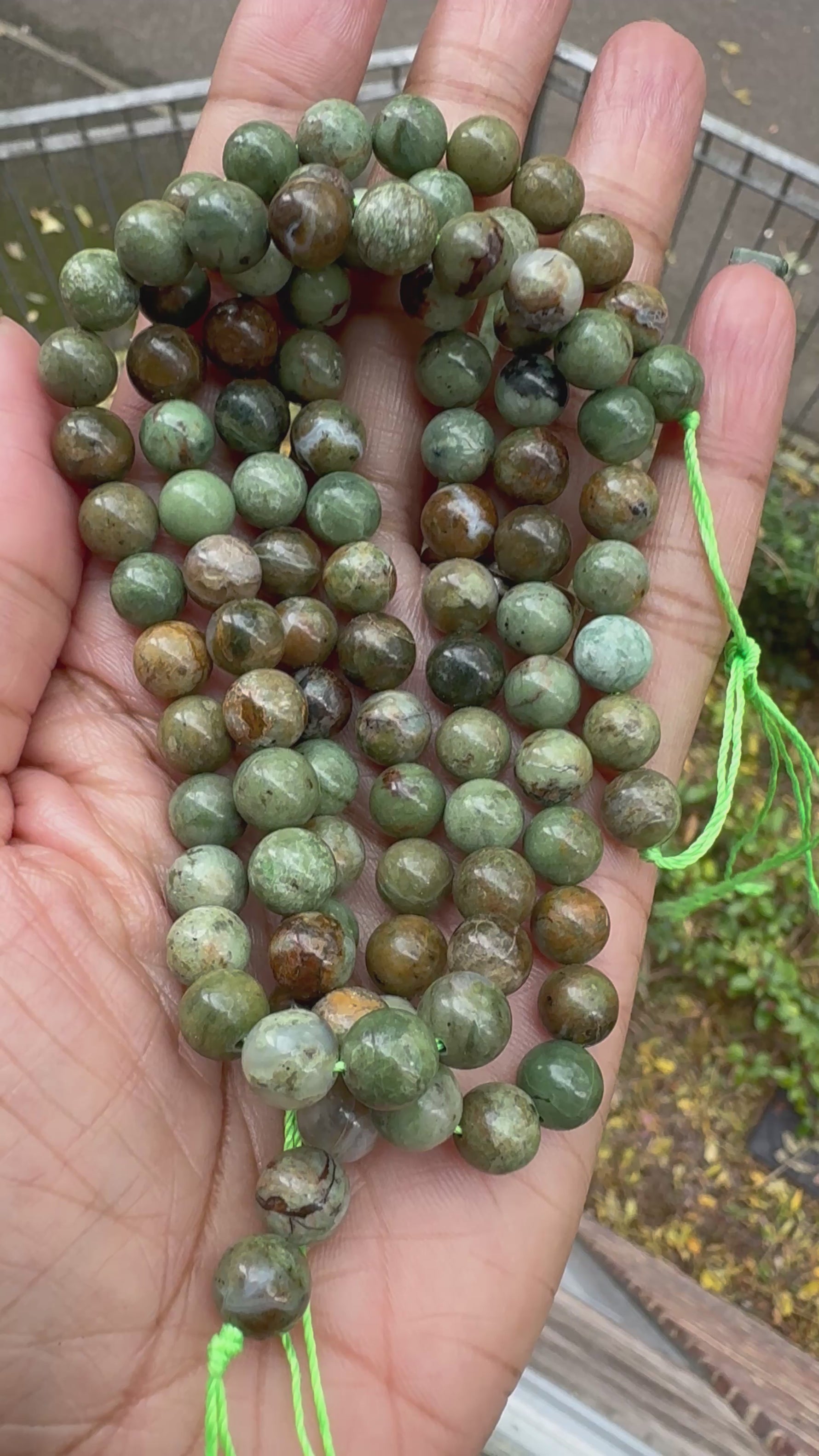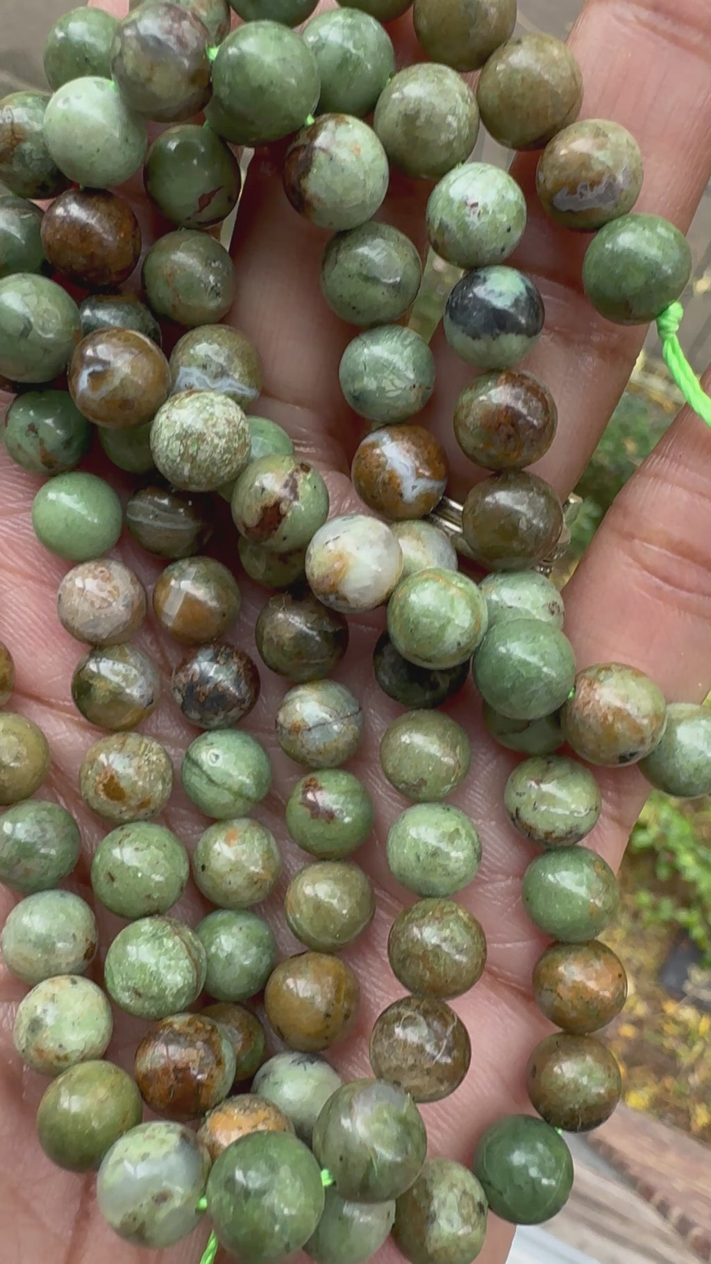 - 8mm natural green opal beads