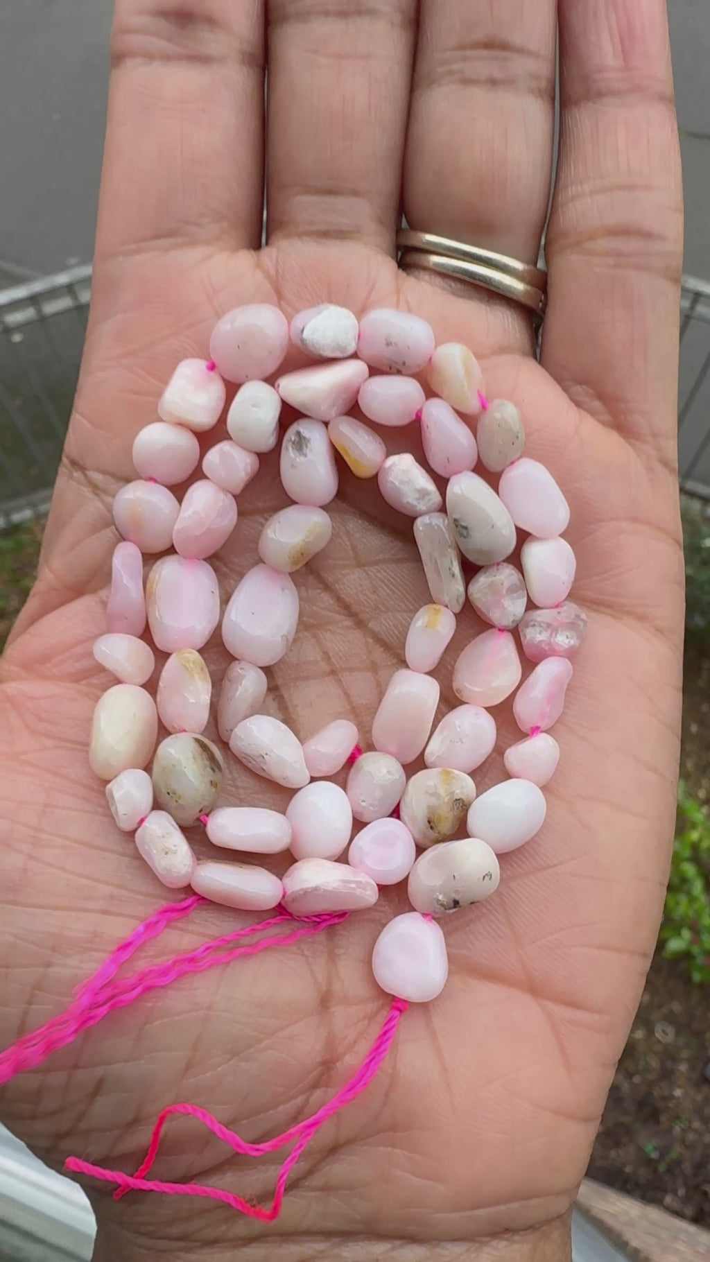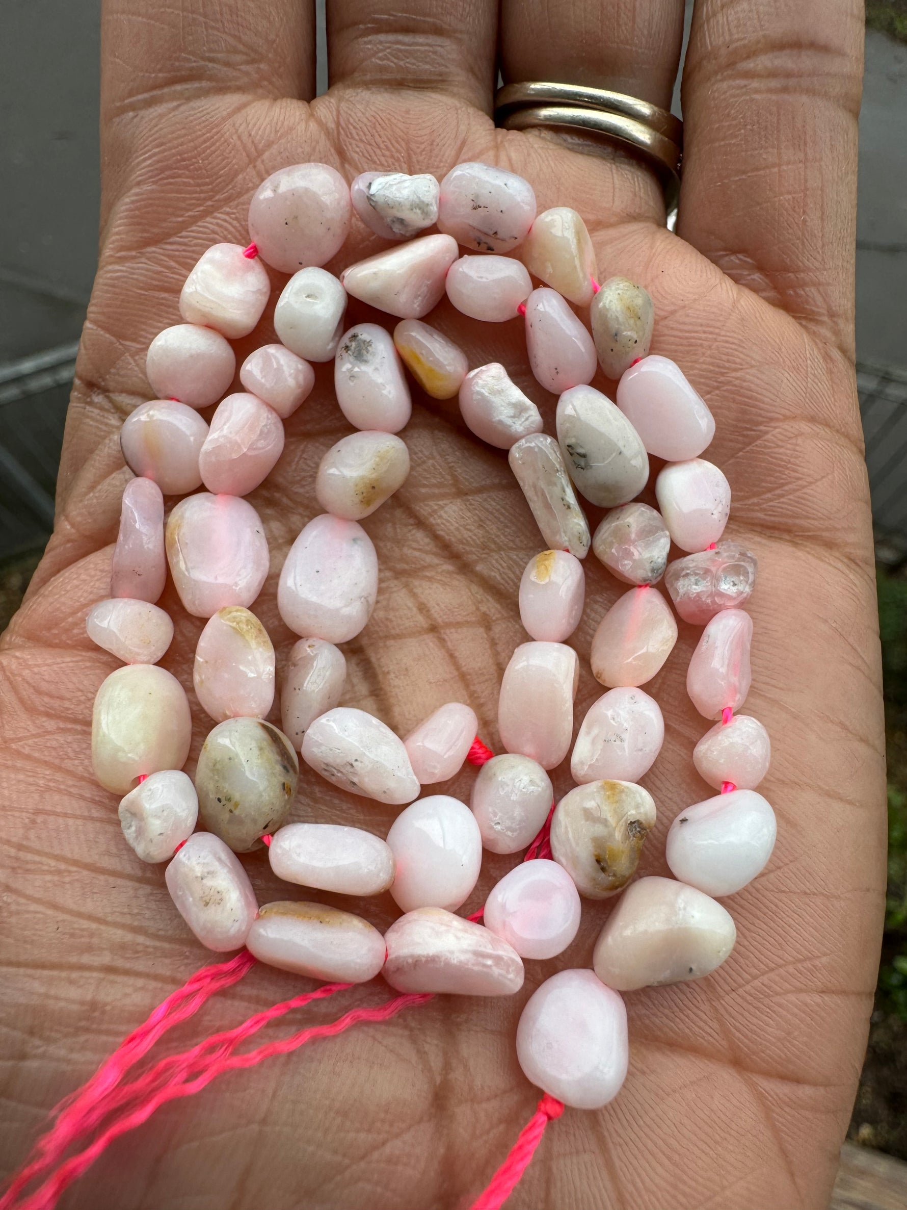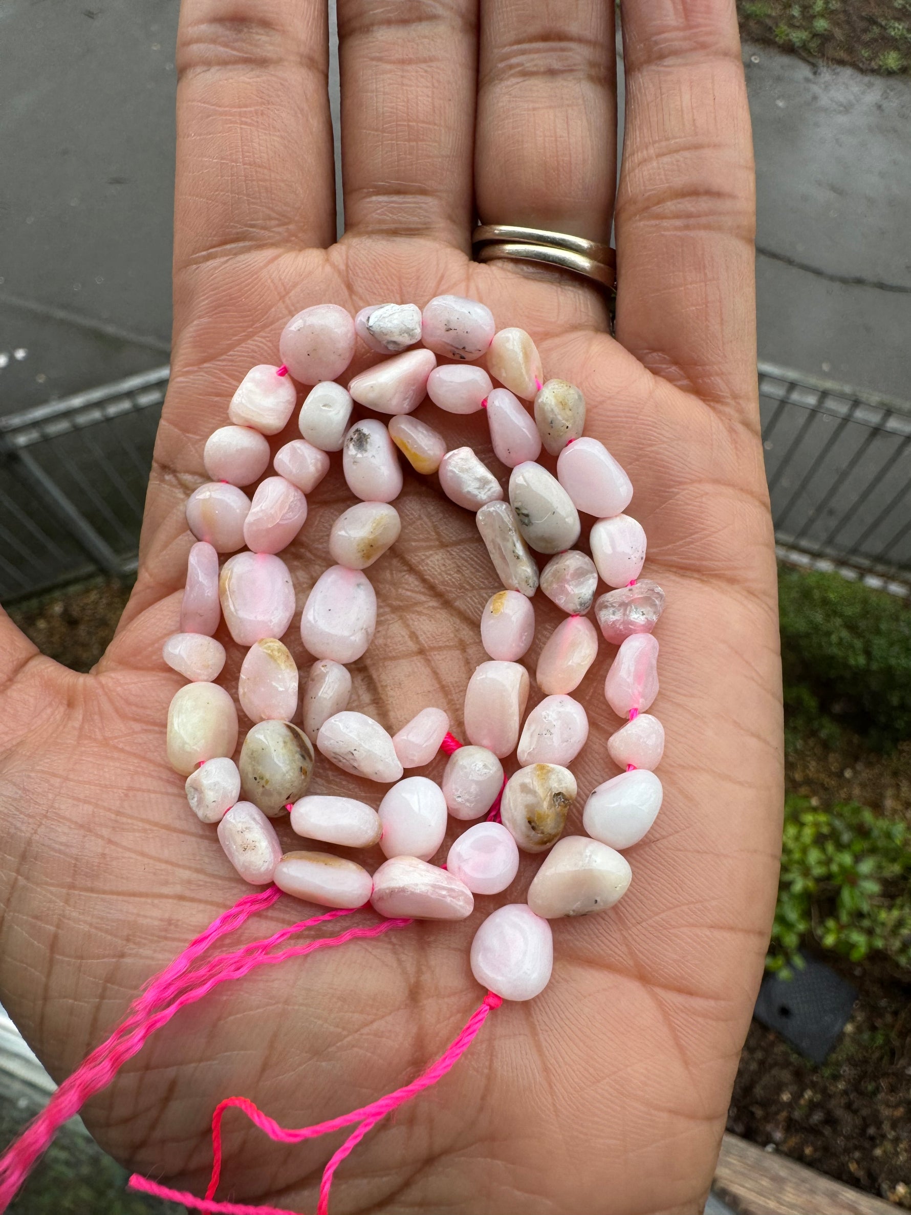 - Small pink opal nugget beads ranging from approximately 6-8mm
