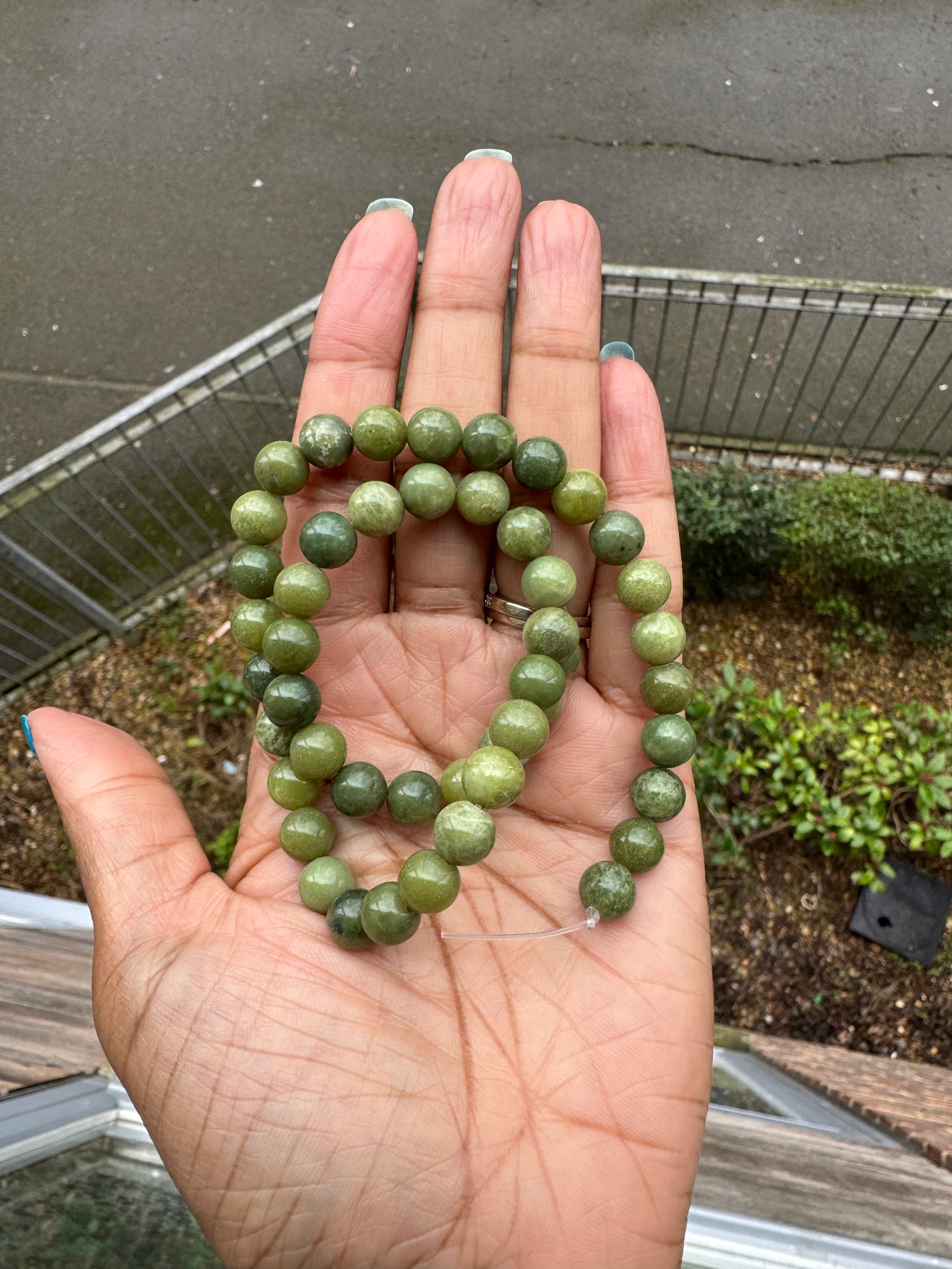 - 8mm natural Olive jade beads