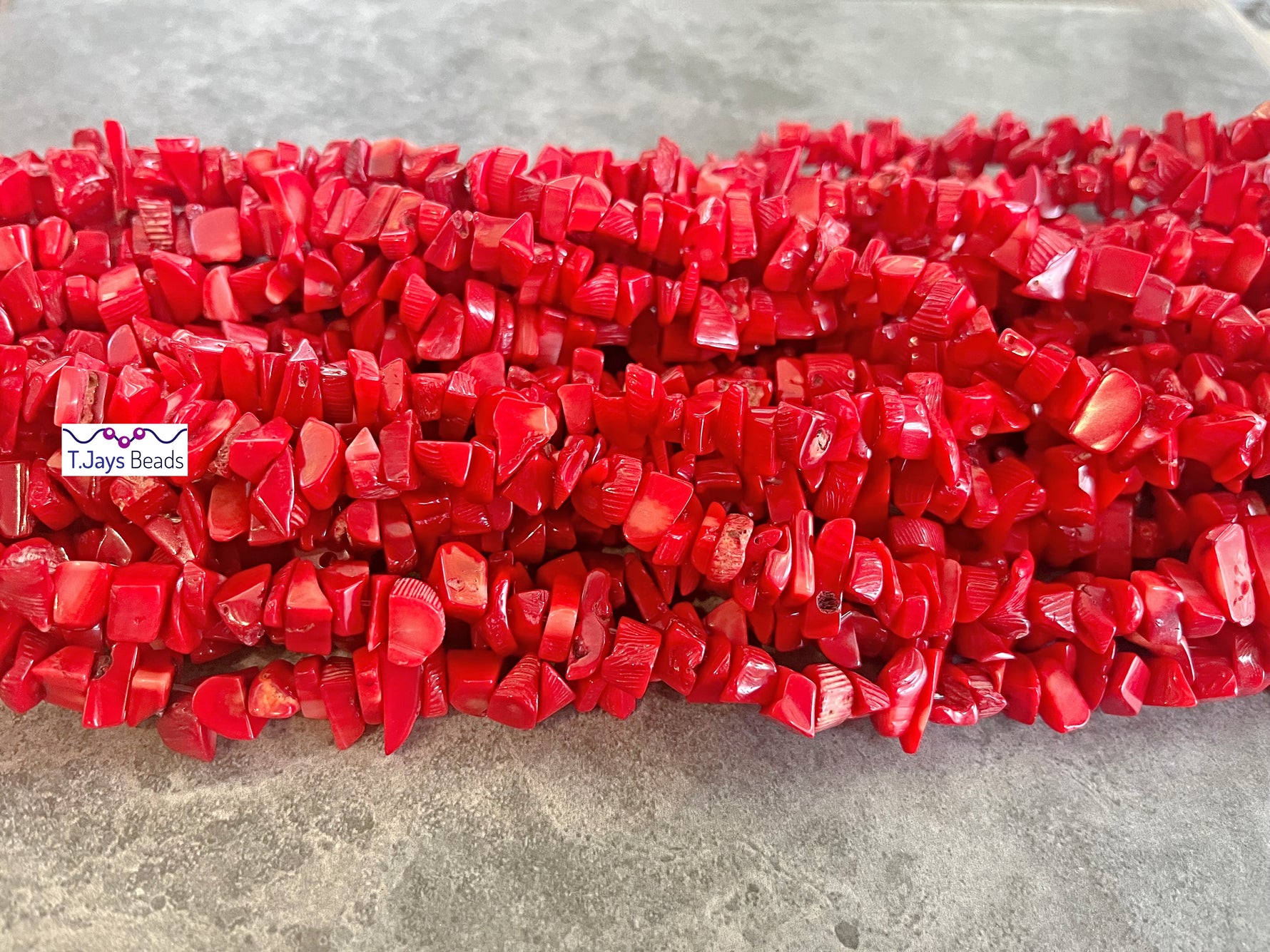 Red Bamboo Coral | Chip Beads | 5-8mm | 32" String